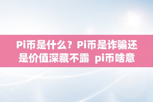 Pi币是什么?Pi币是诈骗还是价值深藏不露及pi币啥意思