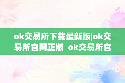 ok交易所下载最新版|ok交易所官网正版 ok交易所官方下载
