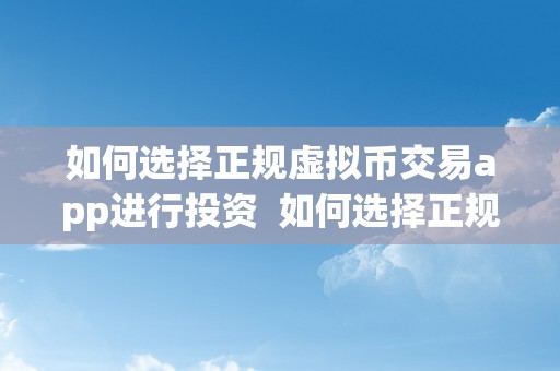 如何选择正规虚拟币交易app进行投资 如何选择正规虚拟币交易app进行投资交易