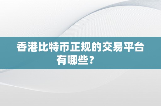 比特币是一种数字货币,已经成为全球范围内非常流行的投资方式。在香港,也有许多比特币交易平台供投资者选择。由于市场的不确定性和波动性,选择一个正规的、安全的交易平台至关重要。