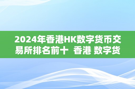 2024年香港HK数字货币交易所排名前十及香港 数字货币交易所