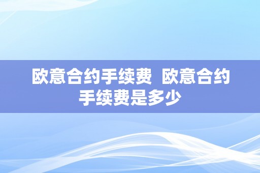 欧意合约手续费及欧意合约手续费是多少?详细解读欧意合约手续费的构成和计算方式