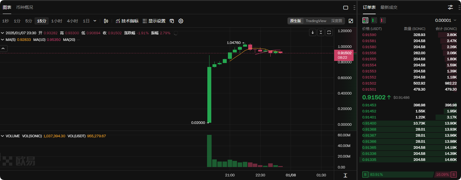 今天在欧易交易所上线的新币Sonic SVM(SONIC)是什么币?开盘暴涨4000%的Sonic SVM(SONIC)能给我带来什么?Sonic SVM(SONIC)——基于 TikTok 的点赚 Web3 小游戏未来前景如何呢?