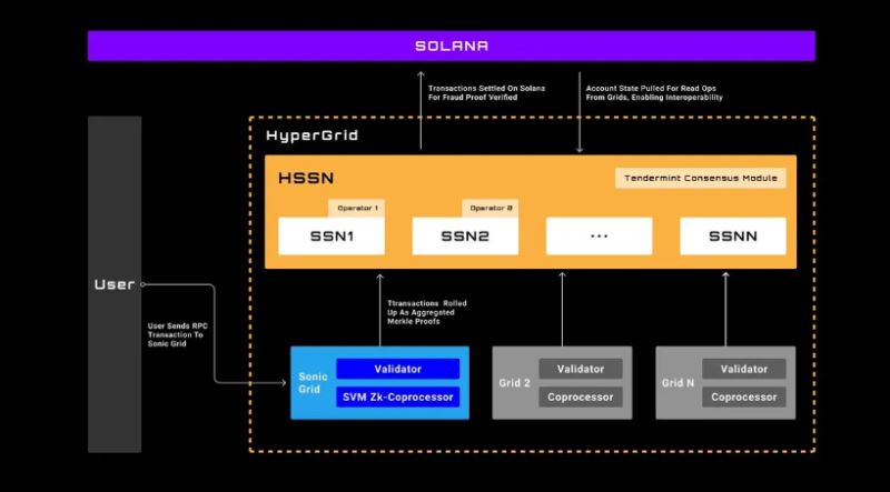 - HyperGrid 共享状态网络 (HSSN):已部署网格的共享验证器网络。它为网格提供互操作性接口,并作为寻求将状态转换安全地汇总到 Solana 的网格的共识层。