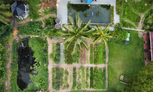 通过生态设计和农业生态学,该公司将豪宅的花园改造成迷你农田,生产蔬菜、香草、水果、鱼类和家禽。此外,平房前的草坪已改造成36个菜园,种植秋葵、菠菜、豆类、羽衣甘蓝、芝麻和萝卜。至于游泳池,现在是一个天然池塘,里面有水草、溪流和各种鱼虾。农场举办各种现场私人聚会。