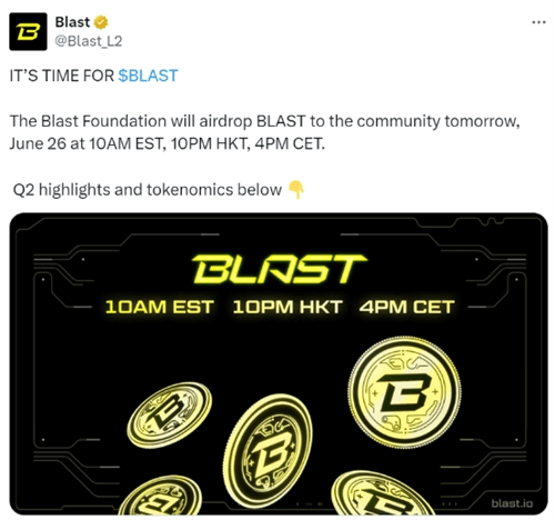 报道还指出,Blast代币的总供应量中,有50%将最终分配给社区。此次6月26日的空投活动即是这一分配计划的“第一阶段”,而剩余的33%将在后续阶段进行分配,具体方案尚待公布。