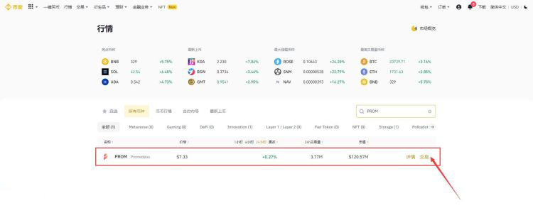 今天小编将以在币安交易所进行购买PROM为例为广大投资者介绍PROM币怎么买?详细教程如下: