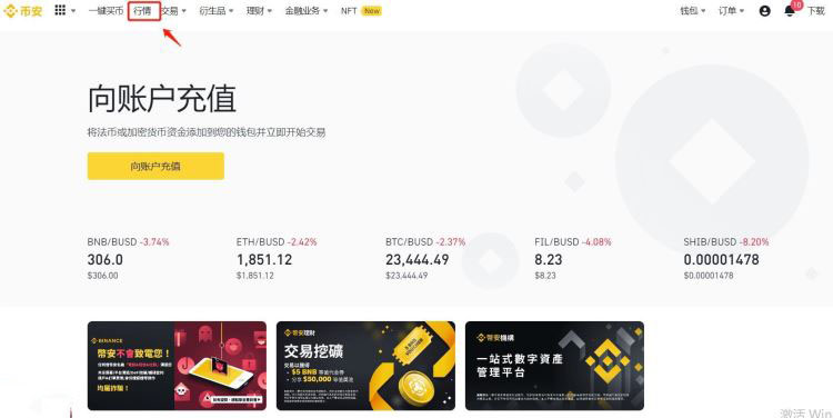 5.完成认证后,在首页点击【行情】进入行情页面(注意:国内用户目前仅支持邮箱注册!)