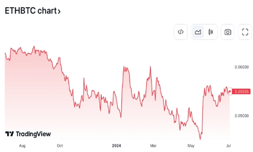 值得注意的是,美国证券交易委员会对以太坊ETF的突然批准决定,已经促使以太币相对于比特币的价格迅速反弹,ETH/BTC的市值一度飙升至0.055以上,这一变化令市场分析师感到意外。