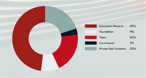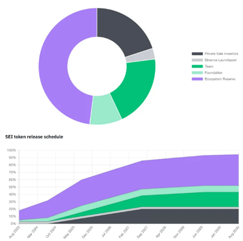 SEI的总供应量上限为100亿枚,具体分配如下:生态系统占48%,团队占20%,投资者占20%,基金会占9%,Binance Launchpool占3%。