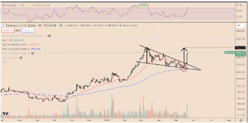 将这一技术规则应用于当前的以太币图表,可以推断,到5月份,以太币的上行目标有望达到约4,120美元,相较当前价格水平,这意味着约10%的上涨空间。