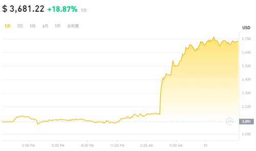 TH以太坊5月21日USD最新价格 以太坊24小时价格上涨超20%
