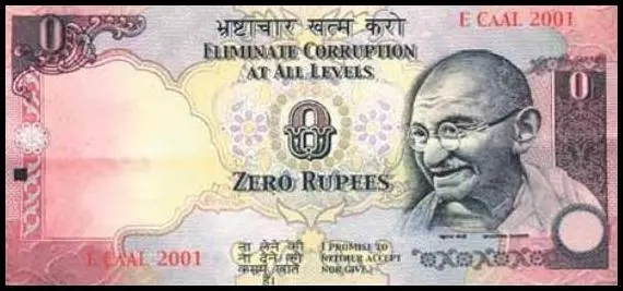 这个事情其实最早发生在2018年的时候,当时的印度市面上确实出现了一种标价为0元的“纸币”,只不过这一货币不是印度政府发行的,或者说它根本就不是货币。到底是怎么一回事呢?这还得从印度政府机关的腐败讲起。