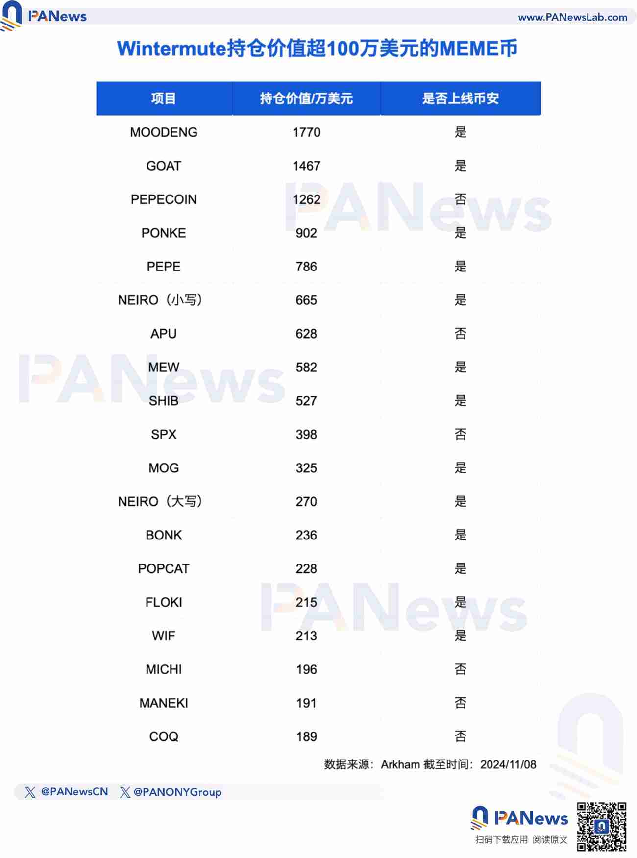 以上就是梳理五大加密做市商MEME币持仓:Wintermute大额押注获币安上线高胜率,多数机构布局老牌项目的详细内容