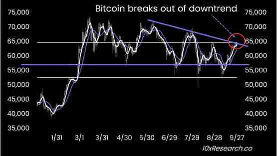10x Research预测,比特币未来两周的目标价为70,000美元,并有望在10月底之前创下历史新高。