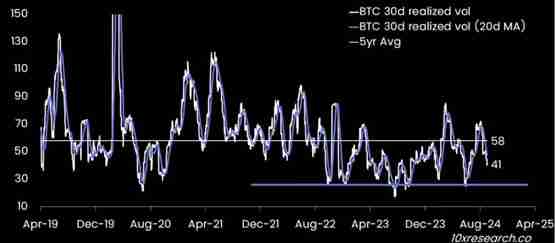 有趣的是,在流动性激增的同时,比特币的30天实际波动率降至41%。由于波动性较低,坚持严格风险管理的机构交易者可以持有更大的部位。由于比特币的永续期货融资利率仍然为负值(或接近零),交易者可以在比特币突破其较低高点的下降趋势时承担更多风险。