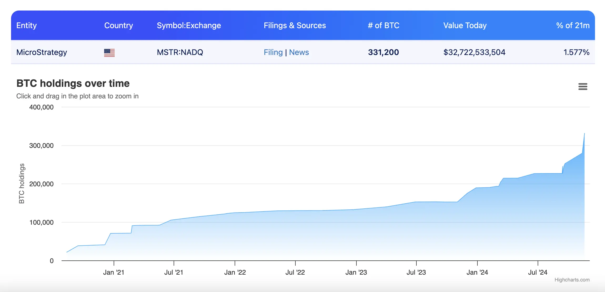 比特币持仓价值超326亿美元,股价今年激增497%