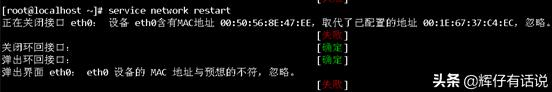 设置好网卡配置之后,需要把网络服务重启一下。输入如下命令